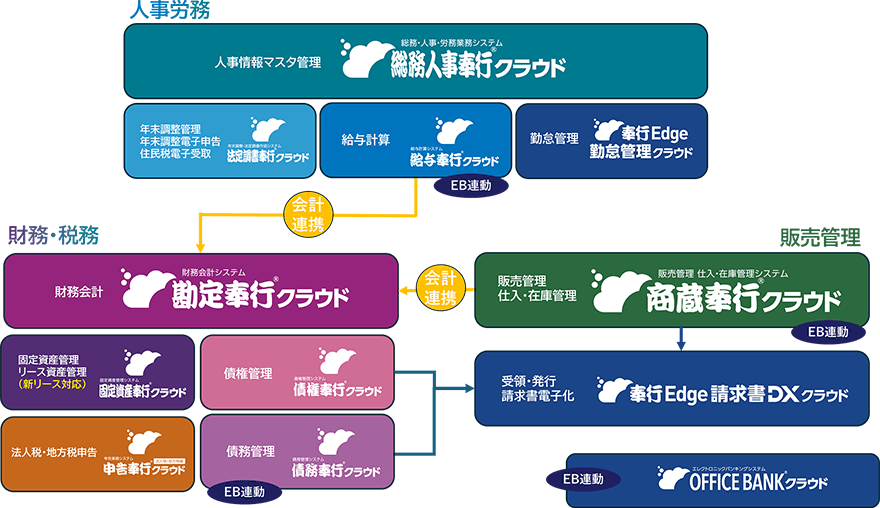財務会計、販売・顧客管理、人事労務管理、統合化ERPパッケージ、そして拡大を続ける連携ソリューション。