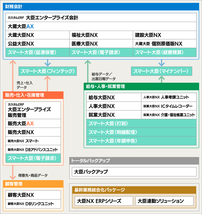 大臣シリーズは先進の機能と洗練された使いやすさで、あらゆる基幹業務を強力にサポートします。